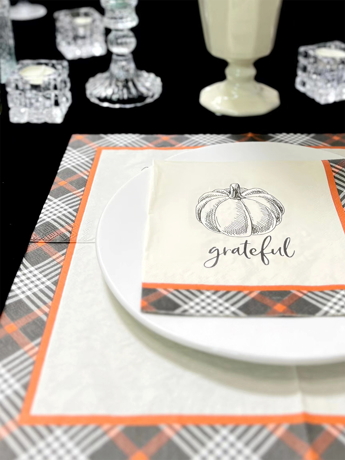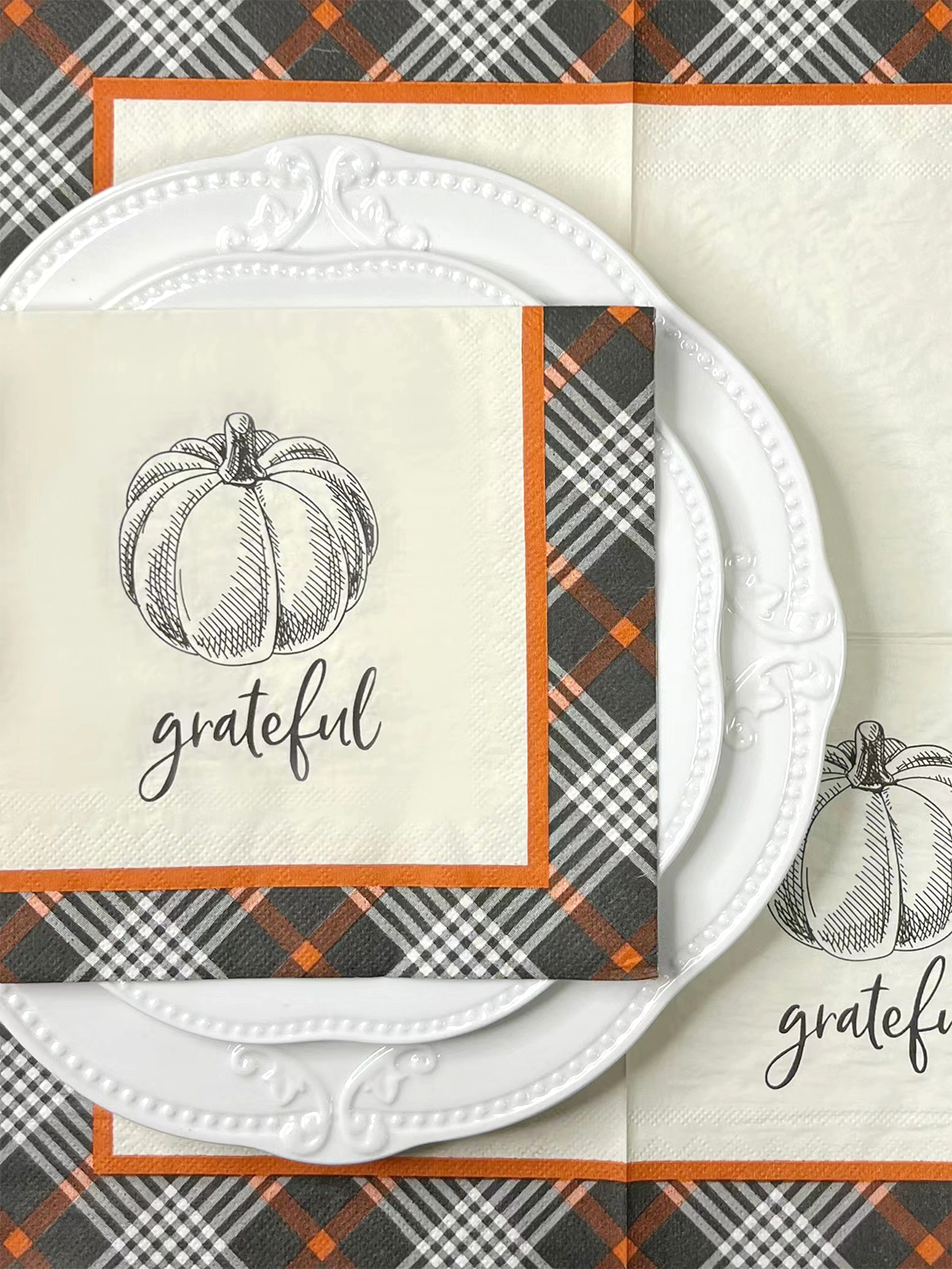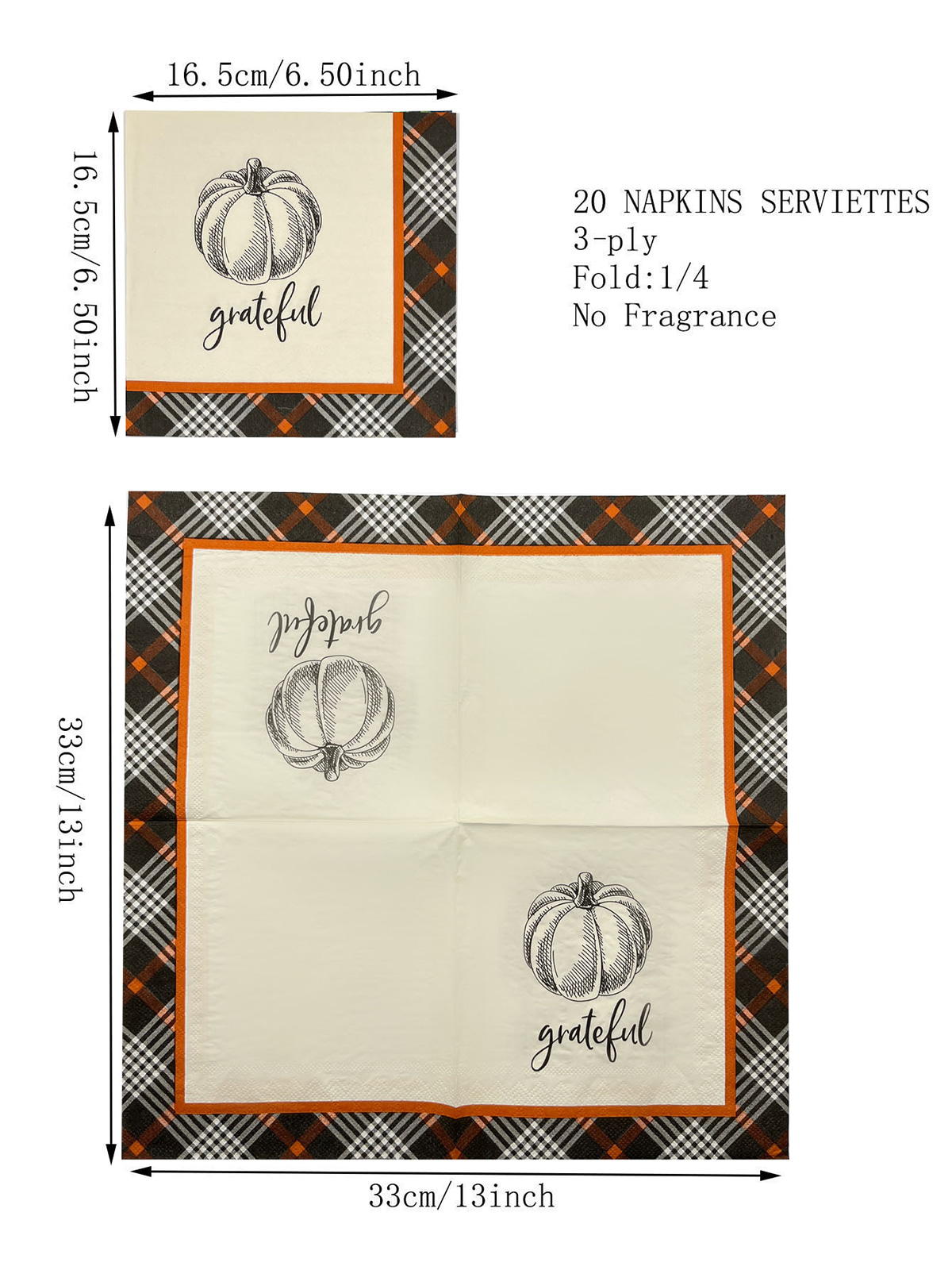 Diese Thanksgiving Grateful Pumpkin Dinner Party-Servietten passen perfekt zu Thanksgiving-Partys und Familientreffen und können auch als Heim- und Restaurantdekoration verwendet werden.
